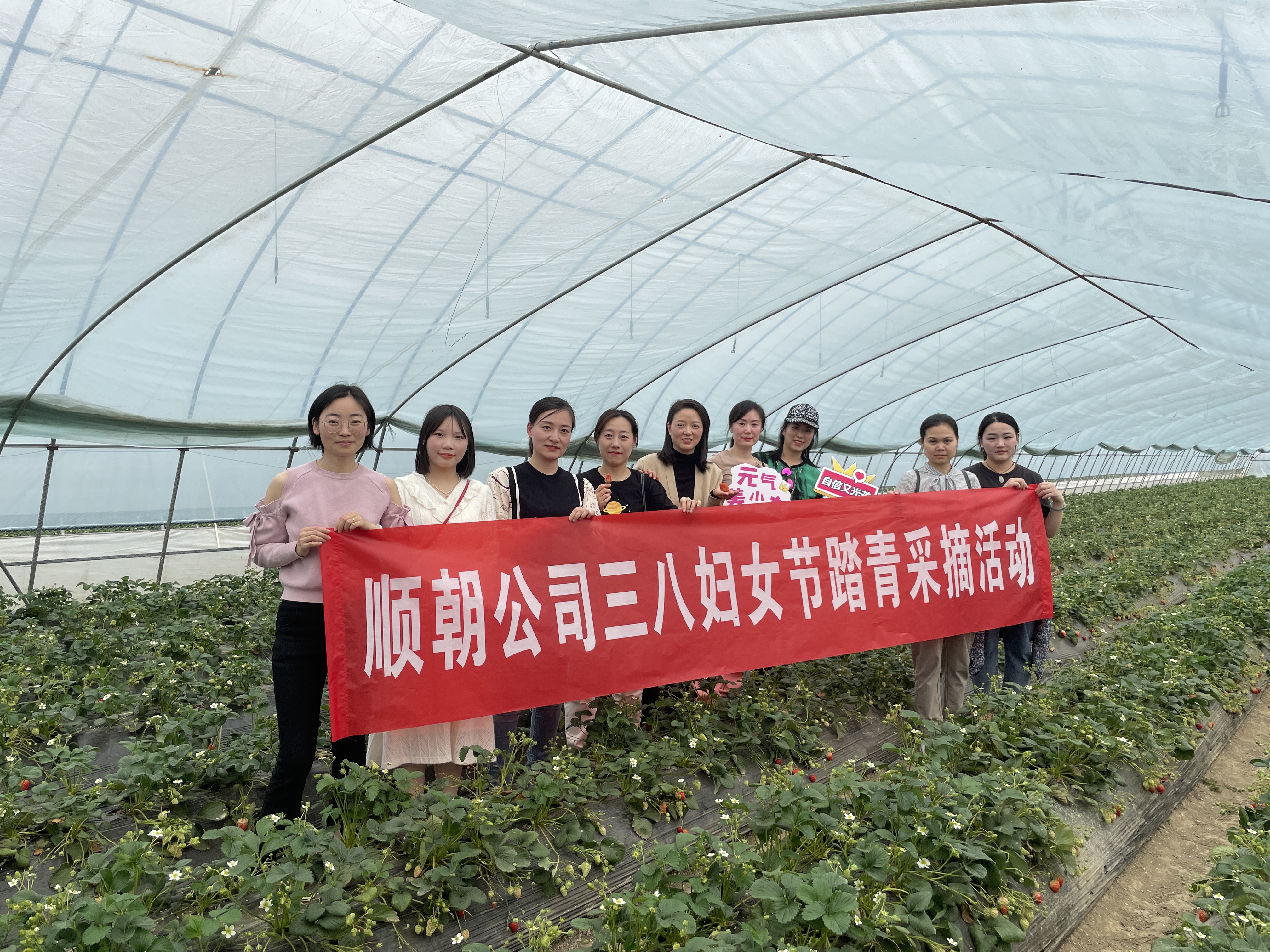 為慶祝三八婦女節(jié),豐富女職工的業(yè)余文化生活,3月8日下午,順朝公司組織女職工開展戶外踏青采摘草莓活動(dòng)。