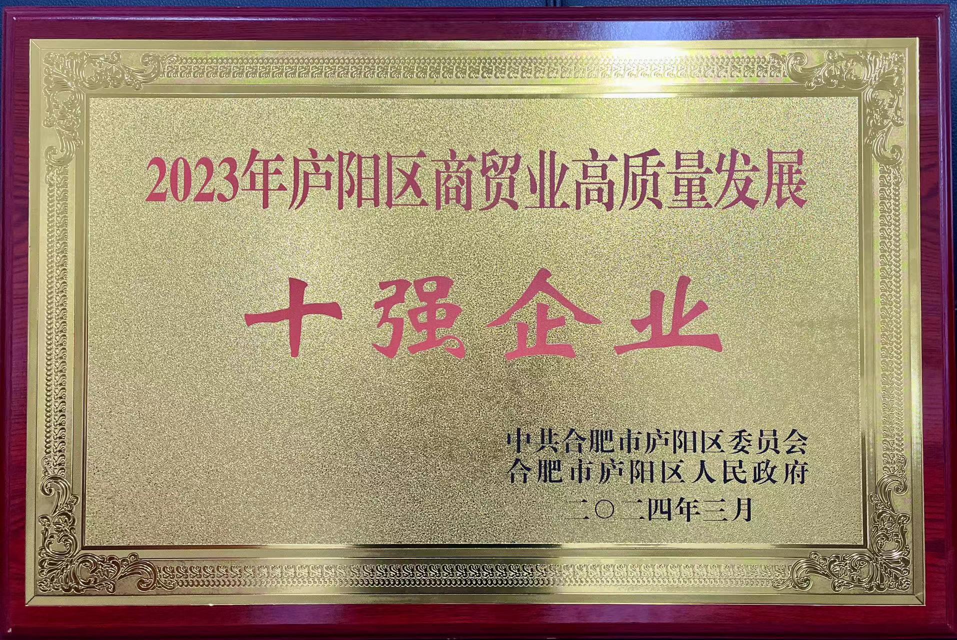 為大力弘揚(yáng)企業(yè)家精神,激勵(lì)企業(yè)家更加奮發(fā)有為干事創(chuàng)業(yè),廬陽(yáng)區(qū)委區(qū)政府印發(fā)《關(guān)于表?yè)P(yáng)2023年度合肥市廬陽(yáng)區(qū)服務(wù)業(yè)、金融業(yè)、商貿(mào)業(yè)、工業(yè)、建筑業(yè)高質(zhì)量發(fā)展10強(qiáng)企業(yè)和新質(zhì)生產(chǎn)力優(yōu)秀企業(yè)的通報(bào)》,對(duì)合肥市軌道交通集團(tuán)有限公司等服務(wù)業(yè)高質(zhì)量發(fā)展10強(qiáng)企業(yè)、建信信托有限責(zé)任公司等金融業(yè)高質(zhì)量發(fā)展10強(qiáng)企業(yè)、安徽省順朝物資有限公司等商貿(mào)業(yè)高質(zhì)量發(fā)展10強(qiáng)企業(yè)、志邦家居股份有限公司等工業(yè)高質(zhì)量發(fā)展10強(qiáng)企業(yè)、中鐵四局集團(tuán)第一工程有限公司等建筑業(yè)高質(zhì)量發(fā)展10強(qiáng)企業(yè)、合肥安信瑞德精密制造有限公司等15家新質(zhì)生產(chǎn)力優(yōu)秀企業(yè)予以通報(bào)表?yè)P(yáng),并于3月5日召開(kāi)的廬陽(yáng)區(qū)推動(dòng)經(jīng)濟(jì)高質(zhì)量發(fā)展大會(huì)上向上述企業(yè)授牌。