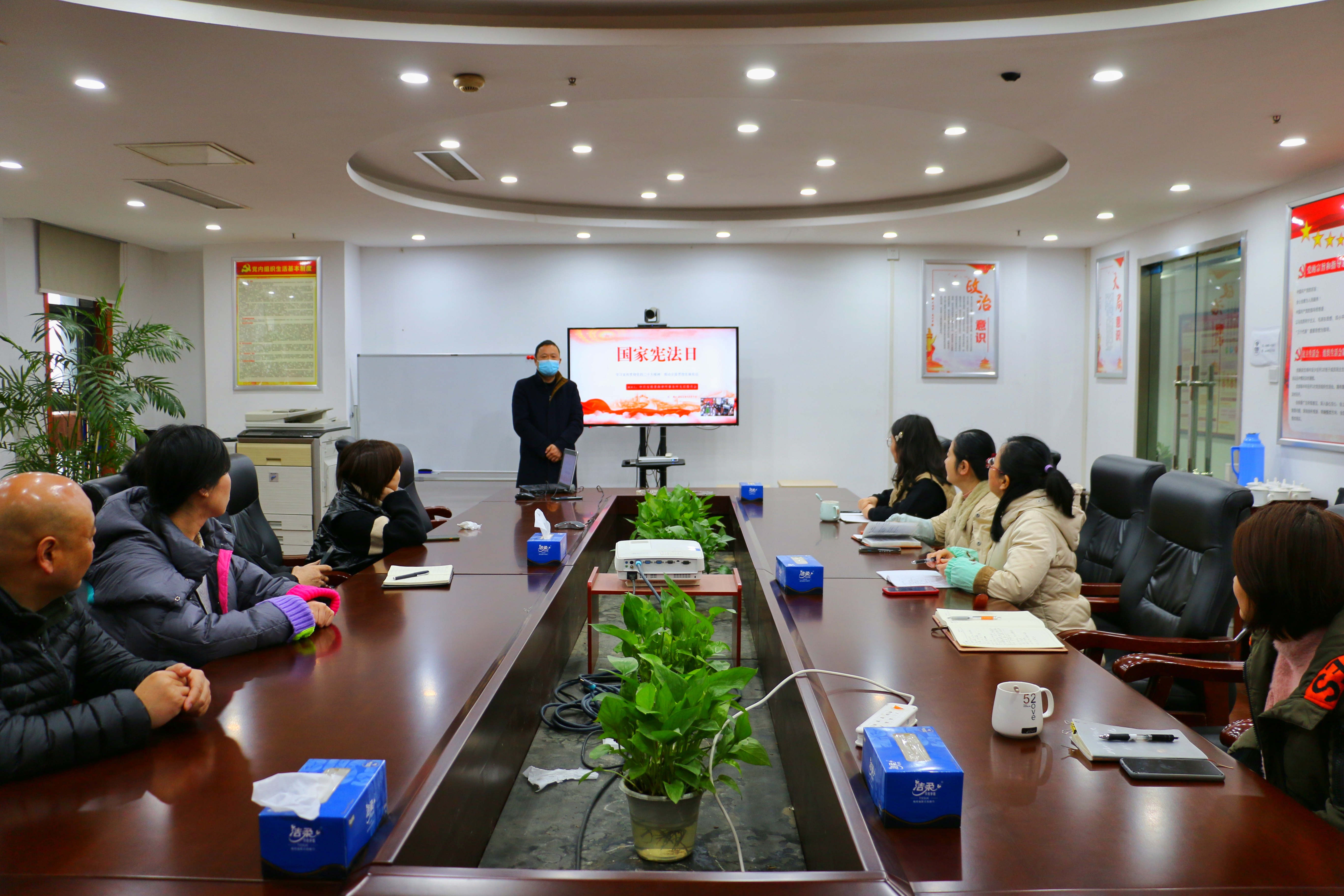 會上,安徽景森律師事務所趙鵬鑫主任結合實際案例,深入淺出的為大家介紹了憲法的發展歷史、憲法的地位與作用、憲法與你我一生的關系、憲法日的由來與意義。通過學習,我們更深刻的領悟到,中國公民從出生到年老,從婚姻到職場,在人生的每一個重要時刻,憲法都默默地保護和陪伴著我們。