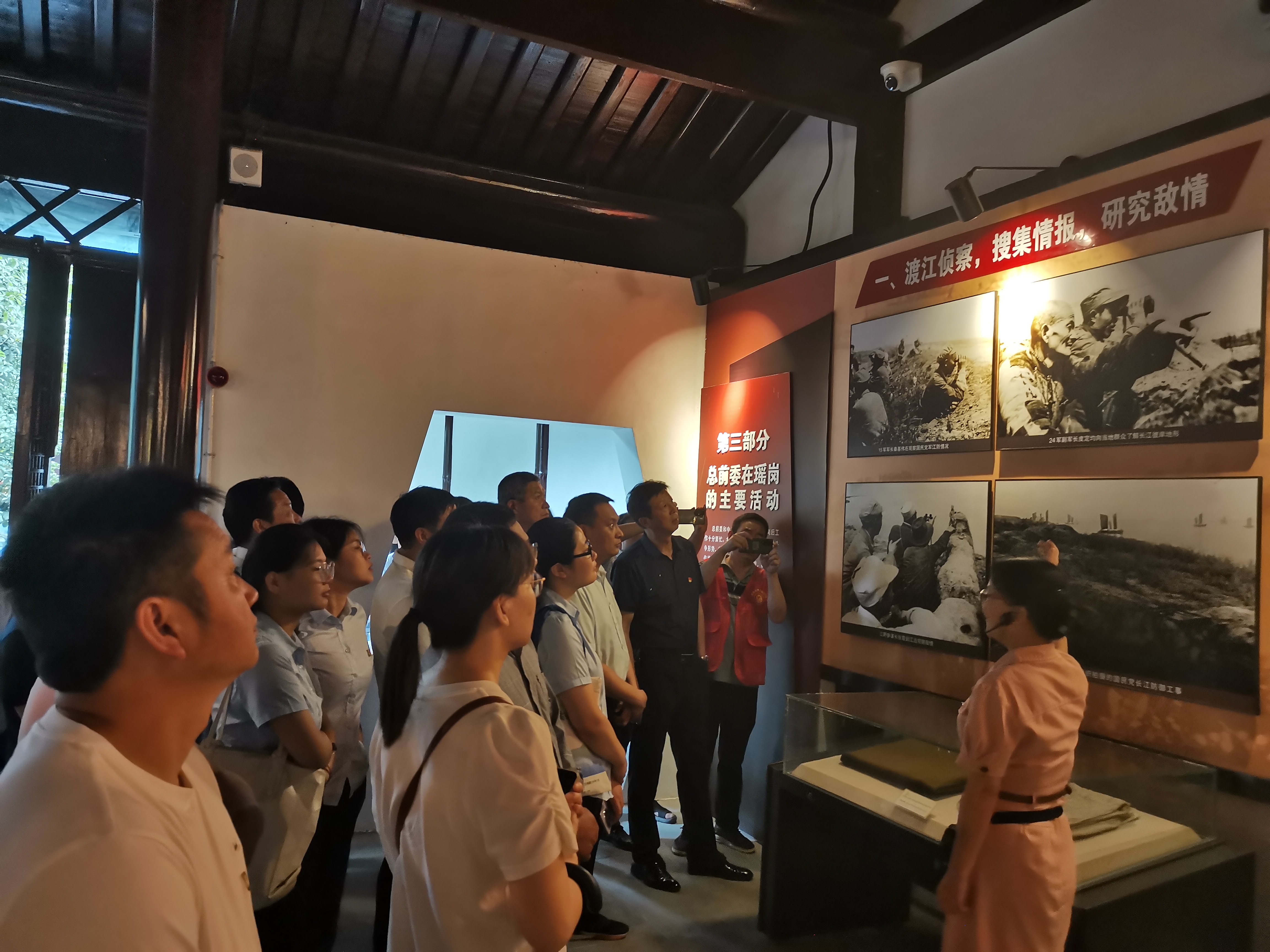 黨員們先后參觀了總前委參謀處舊址、渡江頌書畫展廳、瑤崗紅色文化長廊等展廳,在一件件浸潤著革命先烈智慧與汗水的文物、一組組記錄著偉大時刻的照片前,大家駐足觀看,深刻體會革命先輩們堅定的革命信仰、奮戰到底的大無畏精神,深刻感念“聽黨話、跟黨走、念黨恩”的樸素情懷。