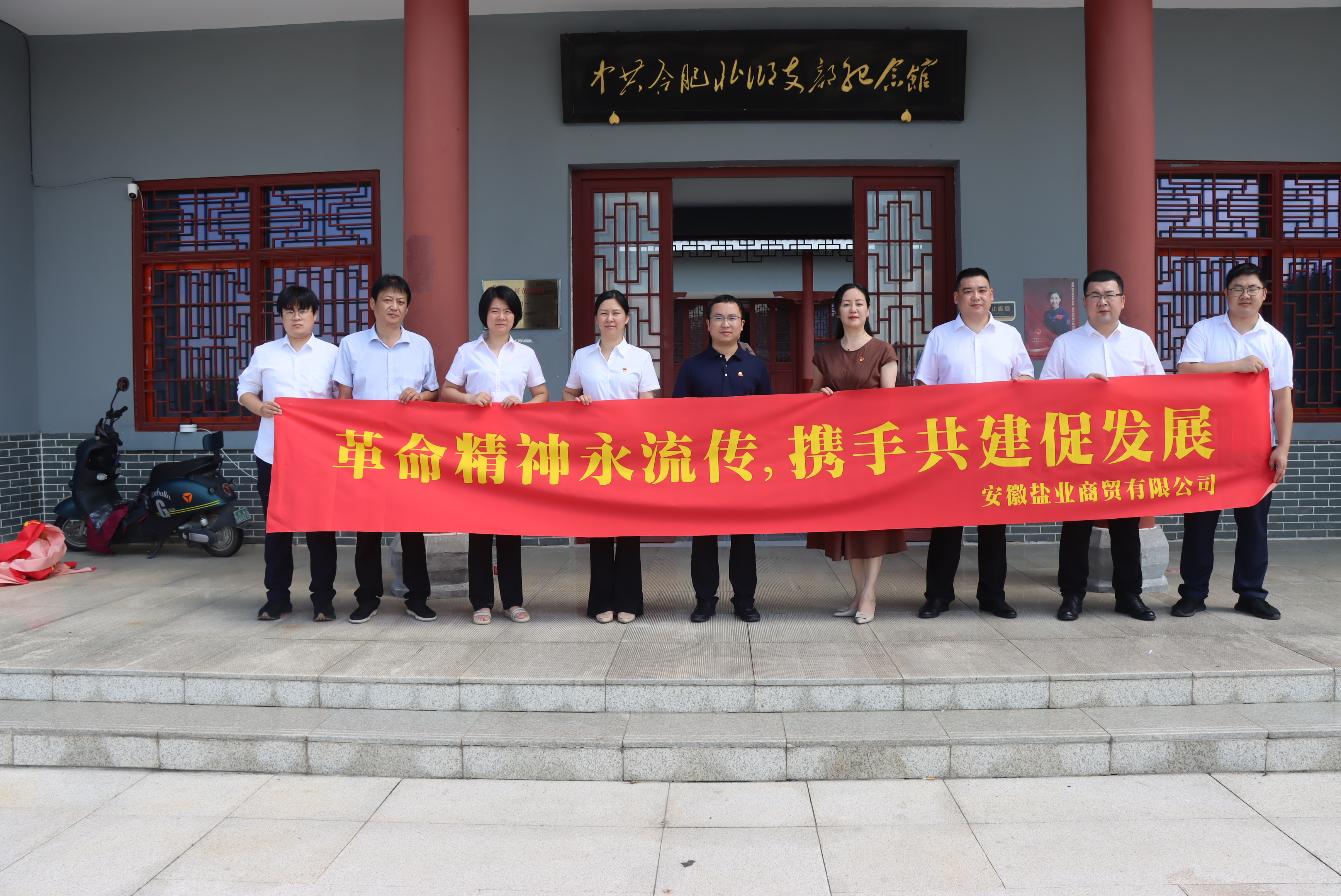 為全面、系統、深入學習習近平新時代中國特色社會主義思想,慶祝中國人民解放軍建軍96周年,7月27日上午,安徽鹽業商貿有限公司黨支部攜手貴州茅臺銷售公司駐外三支部赴中共合肥北鄉支部紀念館聯合開展黨建共建活動,接受紅色精神洗禮。