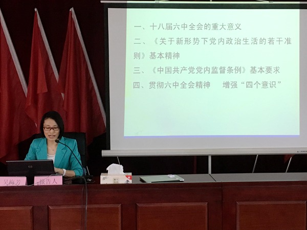 吳梅芳教授從全面從嚴治黨的高度,深刻闡述了黨的十八屆六中全會的重大意義,緊緊圍繞加強和規范黨內政治生活的重要性等四個方面對《關于新形勢下黨內政治生活的若干準則》進行了重點解讀,并就《中國共產黨黨內監督條例》修訂的內容和特點等方面作了提煉分析,對學習貫徹黨的十八屆六中全會精神、不斷強化“四個意識”提出了具體要求。她的報告系統全面,層次分明,站位高、解讀準、接地氣,既有理論深度,又有生動實例,對廣大黨員干部學習領會和掌握黨的十八屆六中全會精神,全面提升企業黨建工作水平具有重要的指導意義和促進作用。