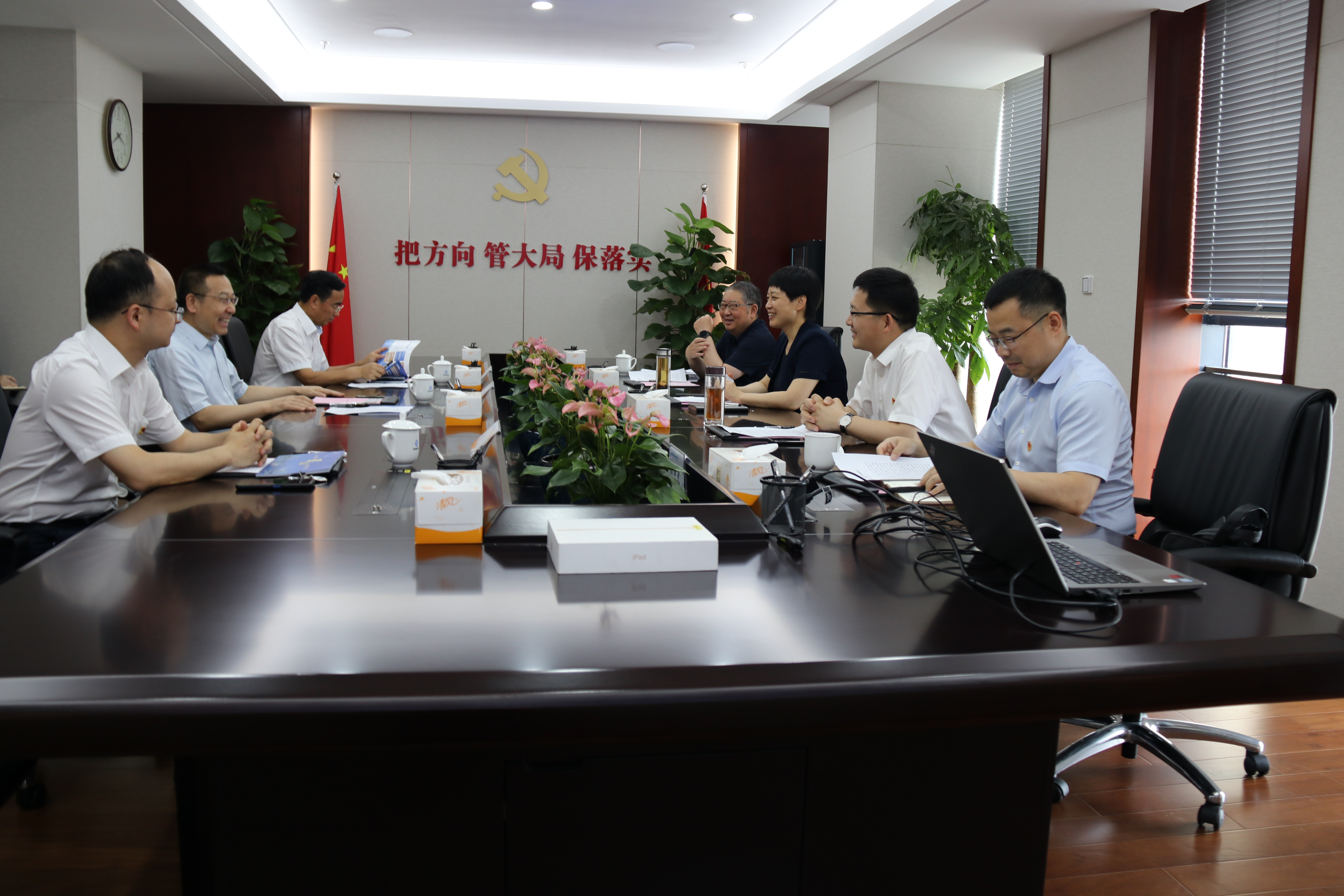 7月1日下午,省鹽業集團公司黨委書記、董事長馬占文,黨委副書記、總經理、董事王思軍會見了來訪的合肥市蜀山區區委書記王海霞,區委副書記、區長楊森一行。雙方有關部門負責人參加會議。