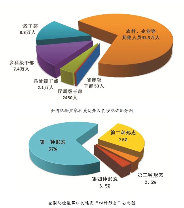 2022年,全國紀(jì)檢監(jiān)察機(jī)關(guān)運用“四種形態(tài)”批評教育幫助和處理共183.8萬人次。其中,運用第一種形態(tài)批評教育幫助123.2萬人次,占總?cè)舜蔚?7%;運用第二種形態(tài)處理47.8萬人次,占26%;運用第三種形態(tài)處理6.4萬人次,占3.5%;運用第四種形態(tài)處理6.4萬人次,占3.5%。