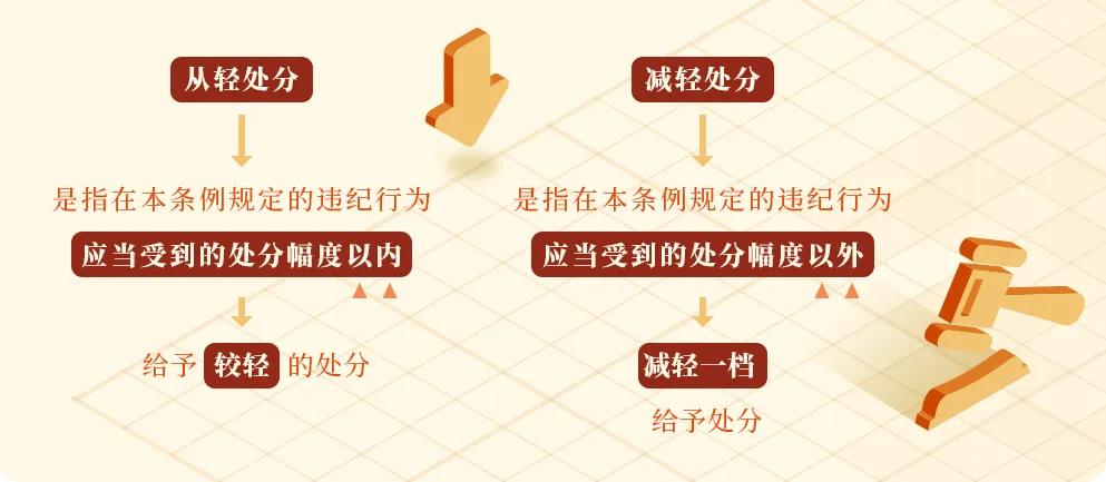 《中國(guó)共產(chǎn)黨紀(jì)律處分條例》規(guī)定有下列行為之一的,可以從輕或者減輕處分: (一)主動(dòng)交代本人應(yīng)當(dāng)受到黨紀(jì)處分的問題。 “主動(dòng)交代”是指涉嫌違紀(jì)的黨員在組織談話函詢、初步核實(shí)前向組織交代自己的問題,或者在談話函詢、初步核實(shí)和立案審查期間交代組織未掌握的問題。 (二)在組織談話函詢、初步核實(shí)、立案審查過程中,能夠配合核實(shí)審查工作,如實(shí)說明本人違紀(jì)違法事實(shí)。 這種情形是指被審查黨員在組織談話函詢、初步核實(shí)、立案審查過程中,如實(shí)說明組織已經(jīng)掌握的本人違紀(jì)違法事實(shí)。 (三)檢舉同案人或者其他人應(yīng)當(dāng)受到黨紀(jì)處分或者法律追究的問題,經(jīng)查證屬實(shí),或者有其他立功表現(xiàn)。 “同案人”指與被審查人共同參與、實(shí)施了違紀(jì)行為的人,其中既包括黨員和黨的組織,也包括非黨員和非黨組織。 “其他人”指沒有與被審查人共同參與、實(shí)施違紀(jì)行為的人,既包括黨員和黨的組織,也包括非黨員和非黨組織。 “有其他立功表現(xiàn)”,是指提供其他案件的重要線索,阻止他人違法犯罪活動(dòng),協(xié)助抓捕其他職務(wù)犯罪案件被調(diào)查人、犯罪嫌疑人(包括同案犯),為國(guó)家挽回?fù)p失等情形。 (四)主動(dòng)挽回?fù)p失、消除不良影響或者有效阻止危害結(jié)果發(fā)生。 “主動(dòng)挽回?fù)p失”,是指違紀(jì)黨員在其實(shí)施的違紀(jì)行為已經(jīng)造成損失的情況下,主動(dòng)采取有效措施,挽回?fù)p失的行為。 “消除不良影響”,是指違紀(jì)黨員在其違紀(jì)行為已經(jīng)造成不良影響的情況下,主動(dòng)采取彌補(bǔ)措施,消除影響的行為。 “有效阻止危害結(jié)果發(fā)生”,是指違紀(jì)黨員在已著手實(shí)施違紀(jì)行為,但尚未造成危害結(jié)果的情況下,主動(dòng)放棄繼續(xù)實(shí)施違紀(jì)行為,并主動(dòng)采取積極措施阻止了危害結(jié)果的發(fā)生。 (五)主動(dòng)上交或者退賠違紀(jì)所得。 這種情形是指主動(dòng)將違紀(jì)所得上交組織。不包括將違紀(jì)所得退回送禮人等情形。 (六)黨內(nèi)法規(guī)規(guī)定的其他從輕或者減輕處分情形。