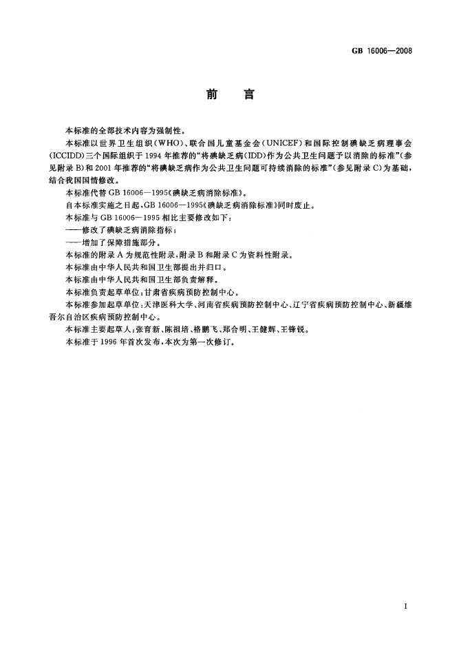衛(wèi)生部國標(biāo)委發(fā)布GB16006-2008碘缺乏病消除標(biāo)準(zhǔn)