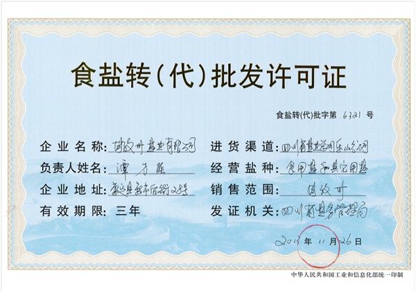 以往食鹽由持有《食鹽定點(diǎn)生產(chǎn)企業(yè)證書》的企業(yè)生產(chǎn),出廠鹽產(chǎn)品由鹽業(yè)公司收購。鹽業(yè)公司作為本地唯一持有《食鹽批發(fā)許可證》的食鹽一級批發(fā)商,對其委托持有《食鹽轉(zhuǎn)(代)批發(fā)許可證》的中間批發(fā)商及零售商、食品加工用鹽單位批發(fā)供應(yīng)食鹽。以銷售渠道單向長度計的中間批發(fā)商分食鹽二級及或還有三級批發(fā)商,其持有的《食鹽轉(zhuǎn)(代)批發(fā)許可證》進(jìn)貨渠道項(xiàng)目,載明為委托批發(fā)的“鹽業(yè)公司”。