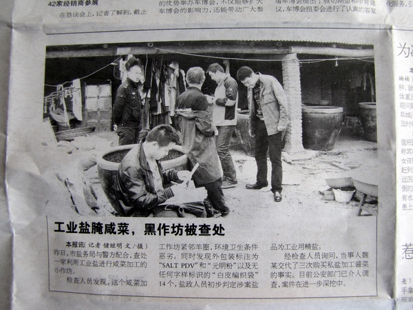 本報訊(記者 儲繼明 文/攝)昨日,市鹽務局與警方配合,查處一家利用工業鹽進行咸菜加工的小作坊。