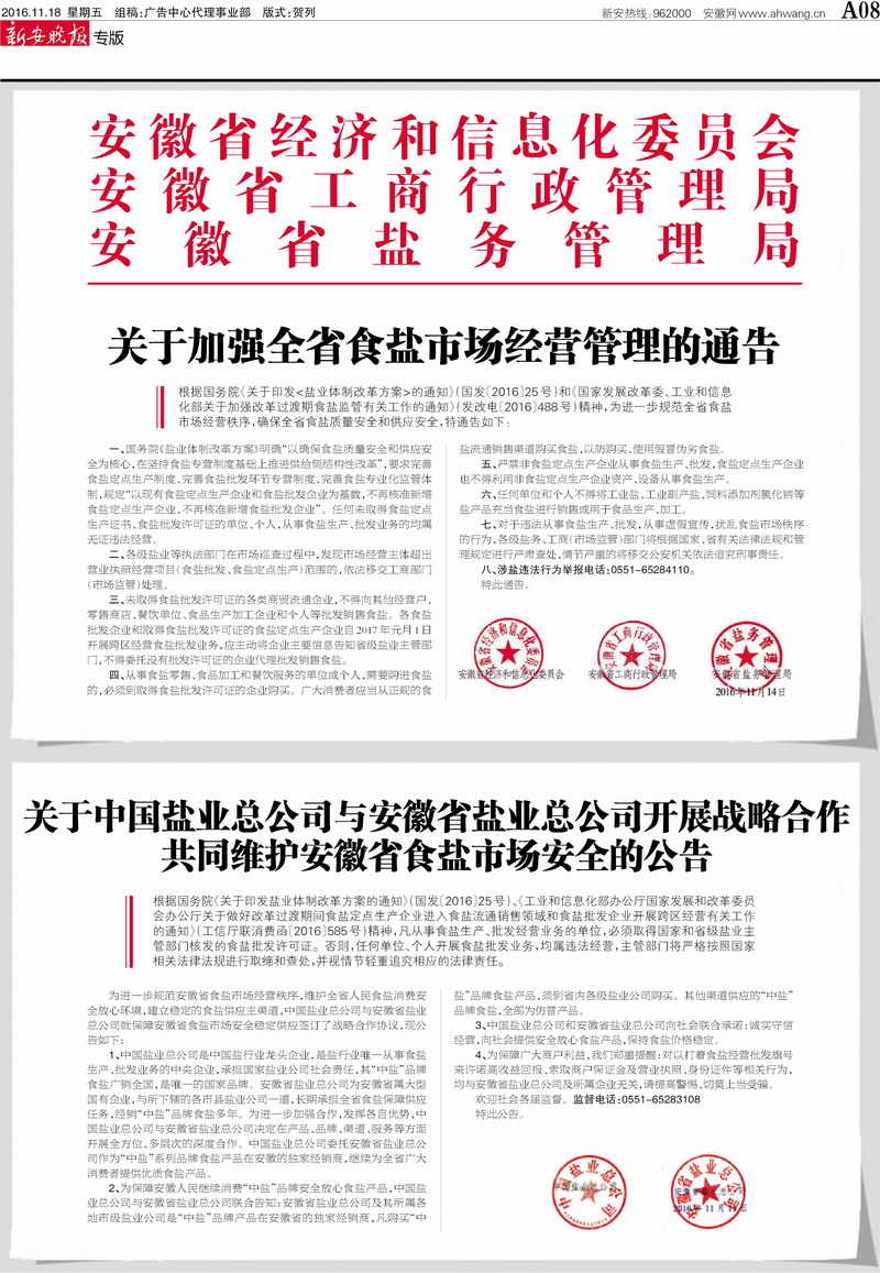安徽省鹽務局涉鹽違法舉報電話是0551-65284110,歡迎廣大群眾監督舉報。