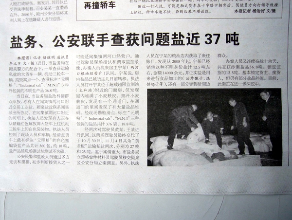 《潁州晚報》:鹽務、公安聯手查獲問題鹽近37噸