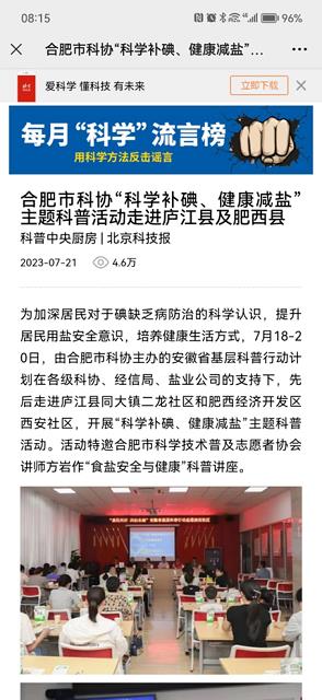 本次活動由合肥市科學(xué)技術(shù)協(xié)會主辦,得到巢湖市鹽業(yè)公司、廬江縣鹽業(yè)公司、肥西縣鹽業(yè)公司的大力支持。